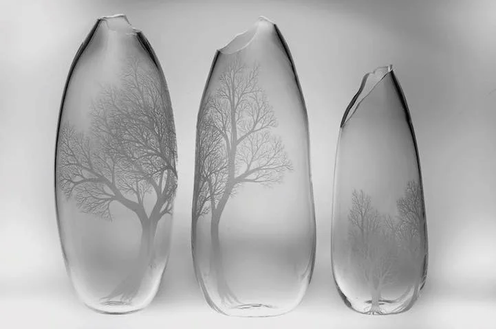 - Kayo Yokoyama beautifully engraves glass vessels with haunting nature scenes.